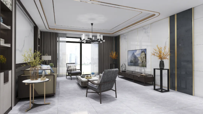 以現代簡約的風格為主,去除過多的裝飾,大麵積的玻璃窗設計引入充足光線,地麵以艾利斯灰作為鋪貼,搭配上溫潤的木紋飾麵板使得整個視覺效果和諧、自然又具有安靜的力量。
