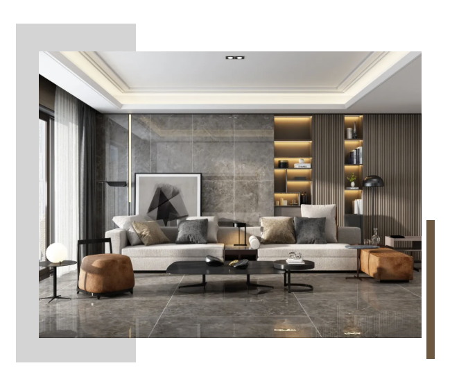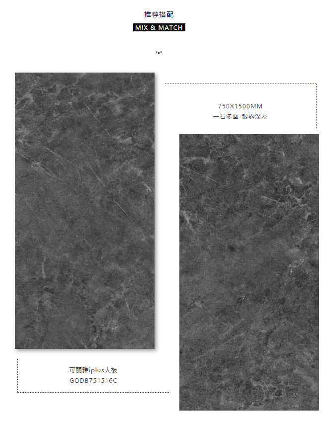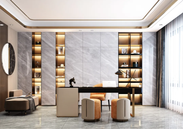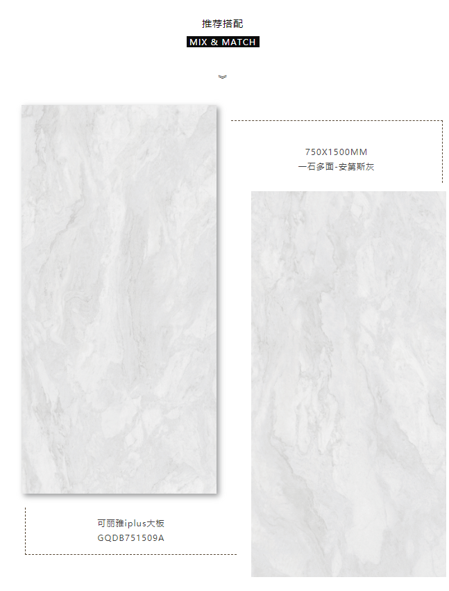 視覺上更加修長,750X1500MM置於空間中不斷延伸,讓整個空間“麵積”倍增的同時,簡化了家居繁瑣的裝飾,鋪設風格大方自然,提升空間時尚感。
