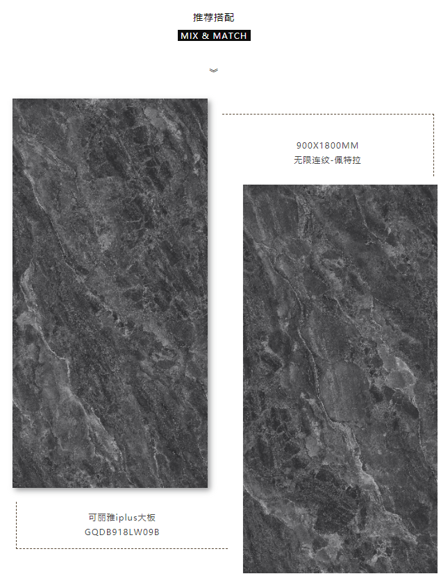 無論是作為居家裝修或是商業應用,900X1800MM大規格瓷磚上牆,因單片麵積更大,花色、紋理印花展現更加豐富且飽滿,呈現出來的視覺效果更加立體。