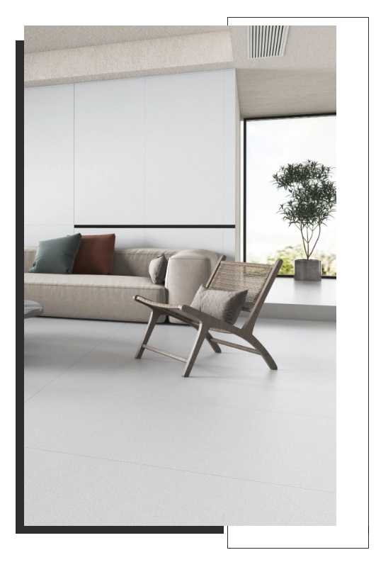 宋素|凡古磚以簡練的方式在地麵徐徐展開,細沙幹粒半拋工藝所帶來的天然質樸,與空間融合出素色的優雅與寧靜,不爭不搶,更符合時下國人流行的生活態度。