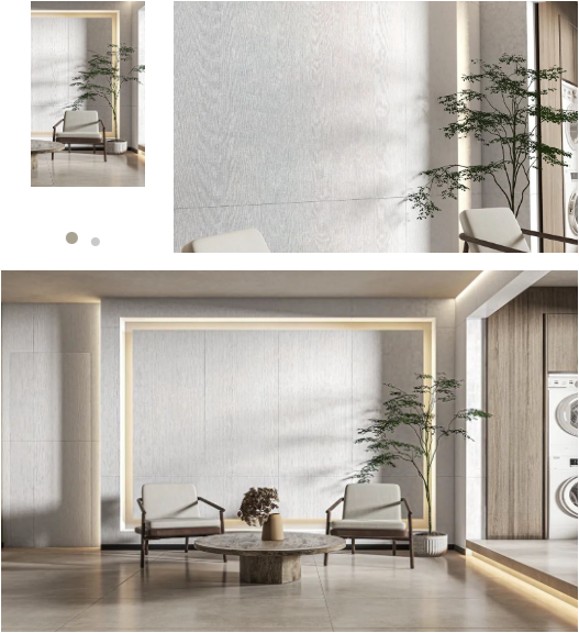 當陽光傾瀉而下,750x1500mm規格沁園春打造的簡約背景牆,與整個空間色係完美融合,延伸中不僅拓寬視覺界限,質樸沉靜的底蘊,仿佛讓空間散發出一種歲月沉澱的味道。