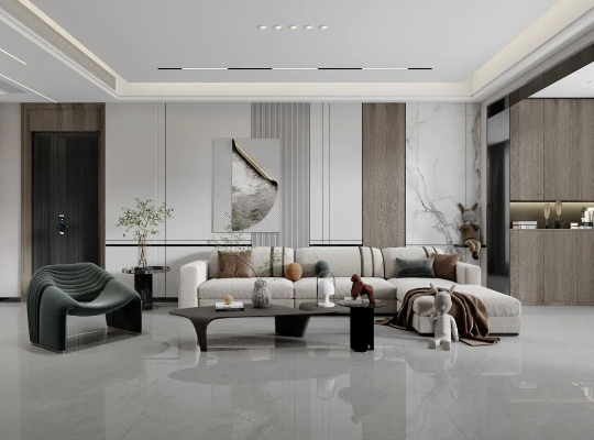 將知性優雅的簡素灰與溫暖木色相互搭配,簡奢質感呼之欲出,進一步放大空間視覺效果,讓空間更顯大氣與優雅。